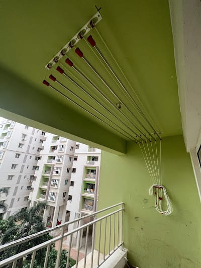 It is a zero-maintenance clothes-drying hanger and a long-lasting product. It is mostly installed on the balcony with an open space for direct sunlight. The rope system is Nylon which remains safe and smooth to use even after direct sunlight. We offer mainly two types of rope systems, the 3mm polished nylon, and the 5mm thick nylon. Both ropes are designed as per the customer’s requirements.